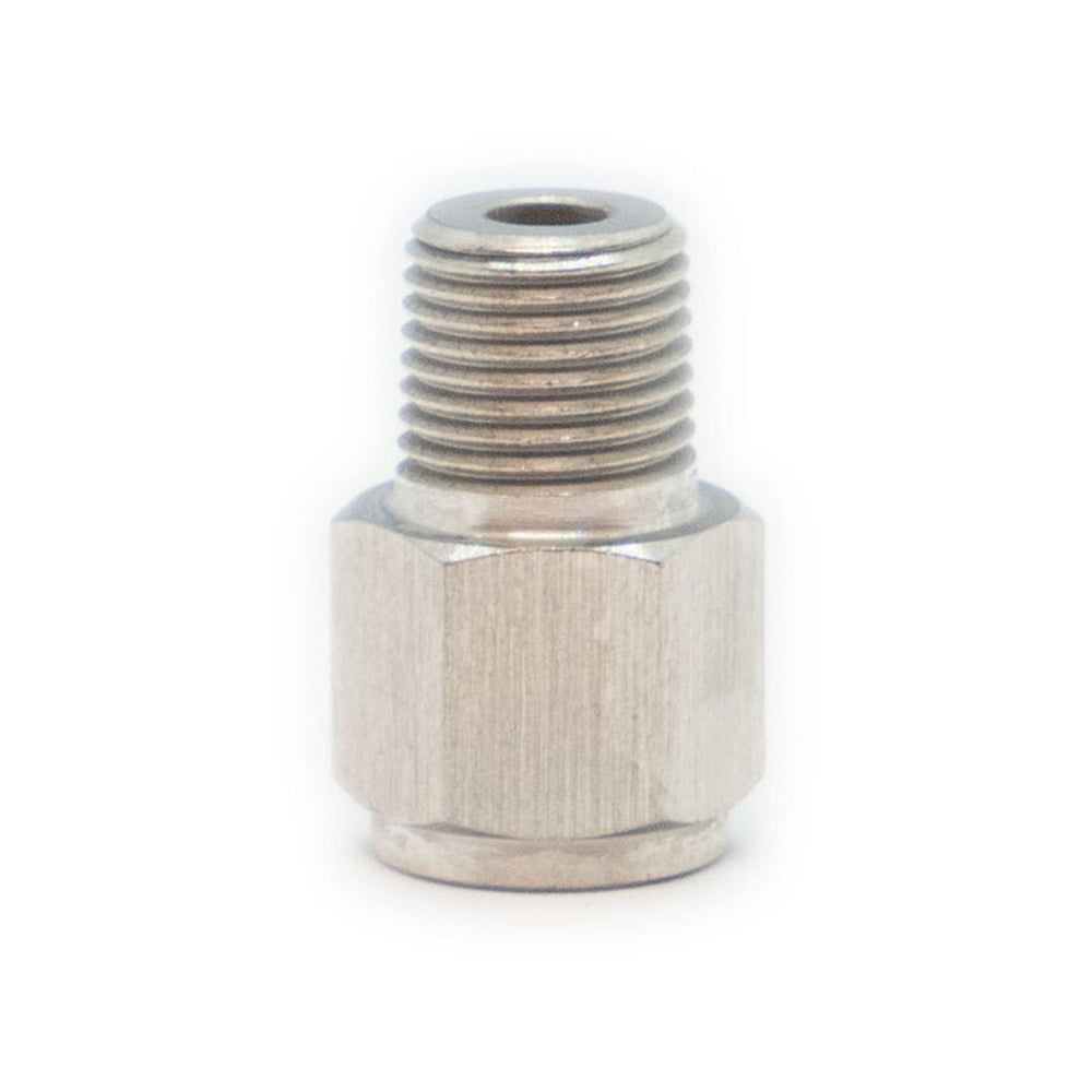 Stainless Steel thread adapter, M10 x 1 Female to 1/8 NPT Male, Adapts popular Bosch Metric Pressure Sensors to suit 1/8 NPT threaded ports.